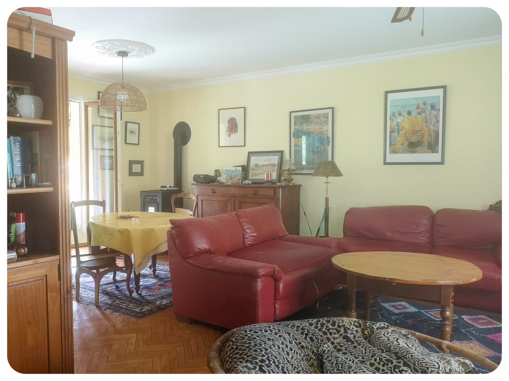 Le chauffage est assuré par un poêle à granulés, offrant une chaleur douce et économique tout au long de l’année.