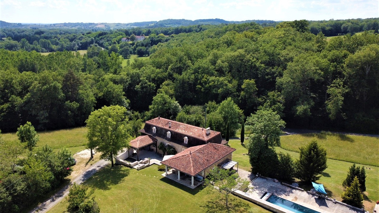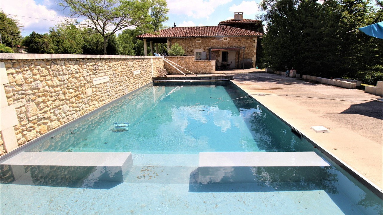 À l’extérieur, le charme opère immédiatement. Un parc paysager soigneusement entretenu entoure la demeure, offrant un cadre verdoyant et intime. Une superbe piscine de 12 x 5 mètres, équipée d’un volet immergé, vient parfaire cet art de vivre en toute sérénité. À l’extrémité du bassin, une plateforme laisse entrevoir de belles perspectives d’aménagement sous laquelle il est possible de finaliser un espace vestiaire avec sanitaires ; et sur laquelle un pigeonnier en pierres, déjà envisagé, pourrait également voir le jour et enrichir le cachet de la propriété.
