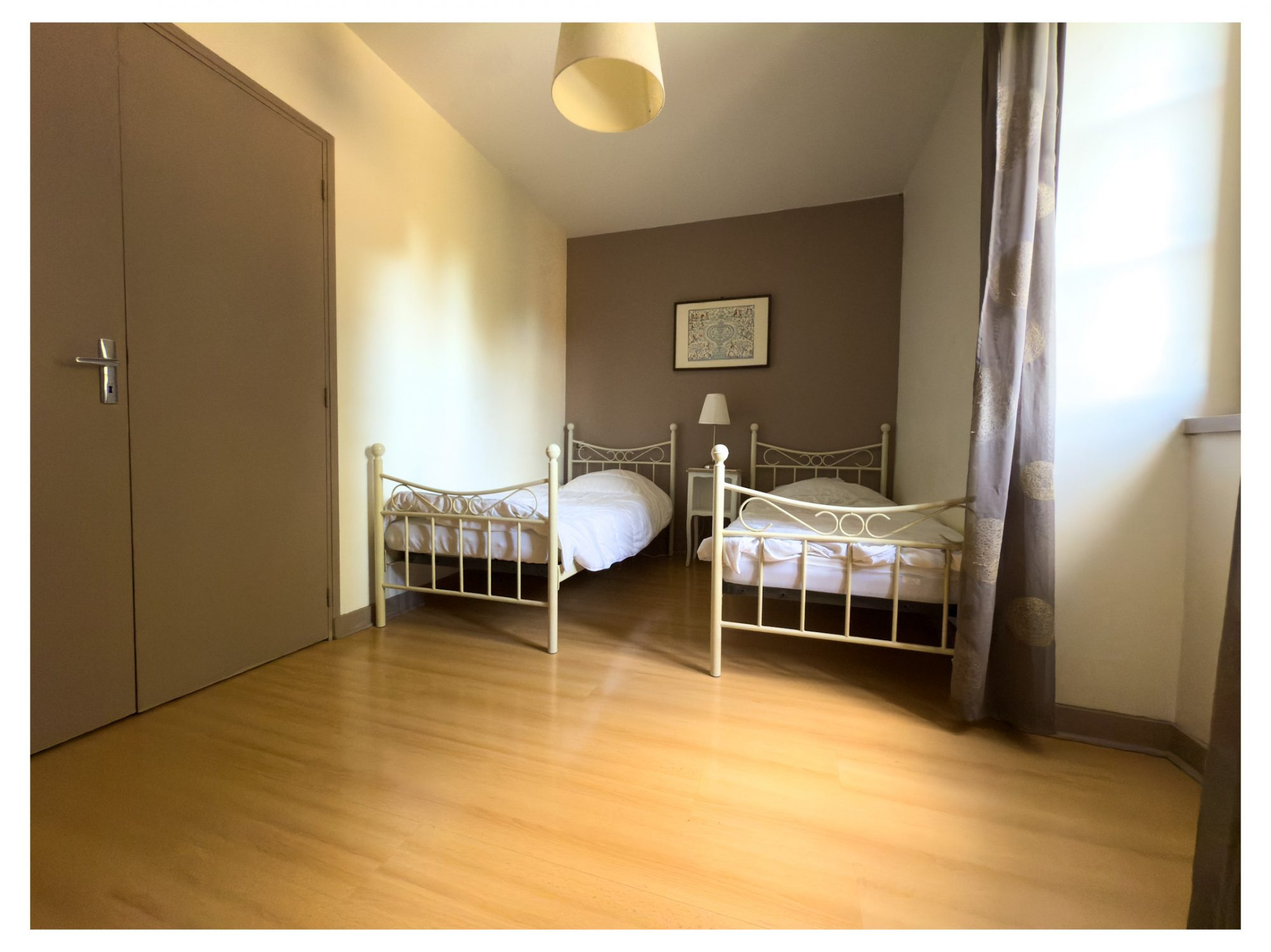 Au rez-de-chaussée, un vaste espace de vie d’environ 50m2 composé d’un salon, séjour et cuisine, complété par une chambre ouvrant sur l’extérieur et une salle d’eau avec wc. L’étage, accessible par deux escaliers indépendants, propose d’un côté un palier desservant une chambre, une salle de bains et des wc séparés, et de l’autre, trois chambres supplémentaires dont une avec dressing, ainsi qu’une salle de bains avec wc.