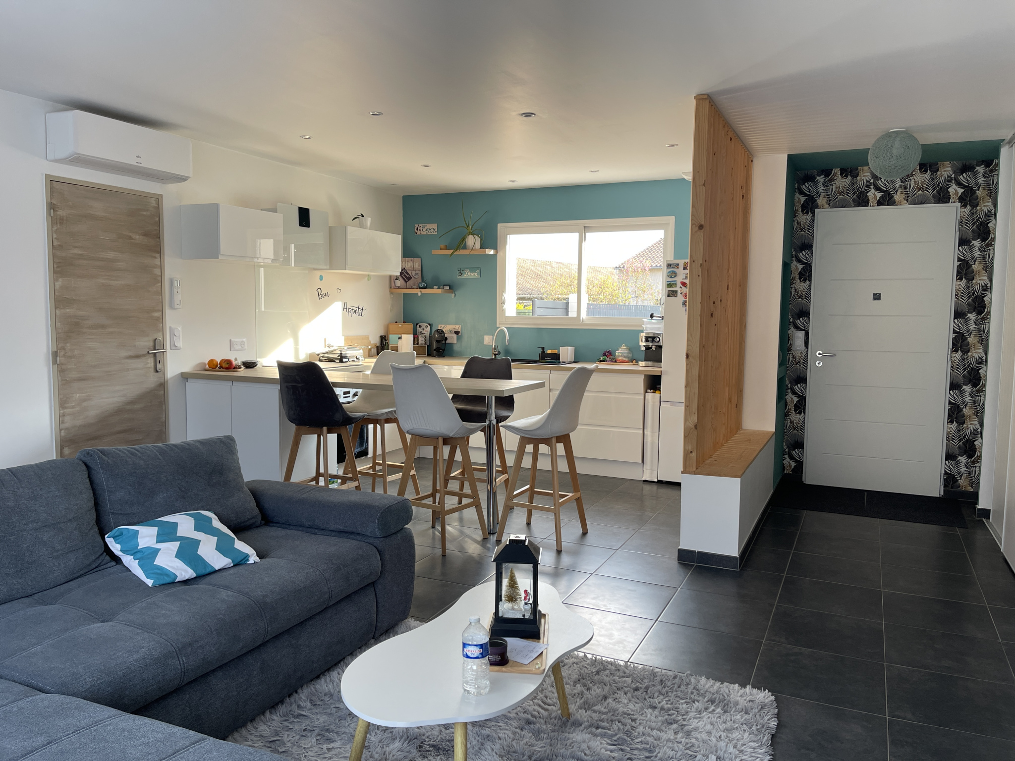 D’une surface habitable d’environ 95 m2, cette maison propose un espace de vie lumineux et parfaitement optimisé : une entrée avec placard, un salon traversant ouvert sur une cuisine américaine conviviale, ainsi que quatre chambres et une salle d’eau contemporaine. Côté pratique, vous bénéficierez également d’un cellier/buanderie ainsi que d’un espace de rangement idéal pour vélos ou matériel.