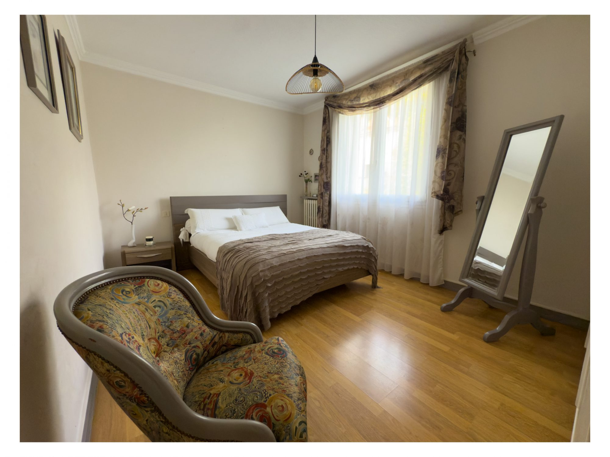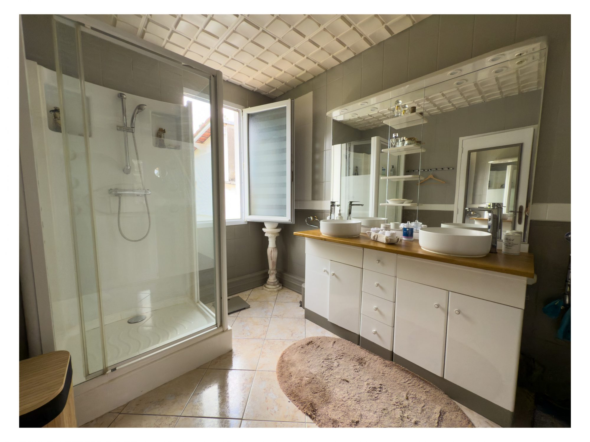 Le rez-de-chaussée offre un vaste garage avec cave et buanderie (70 m2), un hall d’entrée, un salon avec cuisine/séjour lumineux de 25 m2, une grande chambre avec placard, deux salles d’eau et un WC, le tout nécessitant un léger rafraîchissement. À l’étage, vous serez séduits par une belle cuisine indépendante de 13 m2, aménagée et équipée, ouvrant grâce à une verrière sur un spacieux double séjour de 40 m2, un couloir distribuant une vaste salle d’eau de 7 m2 avec double vasque, un WC indépendant, ainsi qu’une chambre avec dressing et une seconde avec placard.